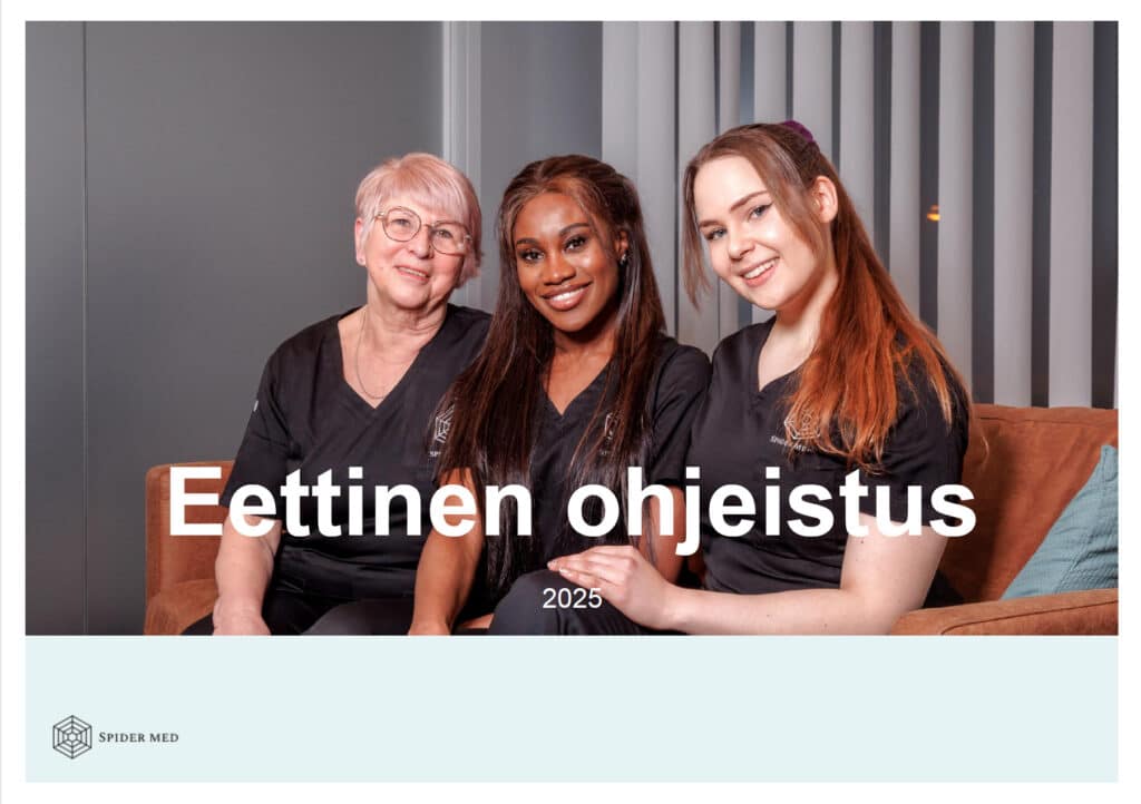 Jokainen spideriläinen sitoutuu noudattamaan eettistä ohjeistusta ja toimimaan Spider Medin arvopohjan mukaisesti ottaen huomioon työntekijä- ja potilaslähtöisyyden, vaikuttavuuden ja laadun.